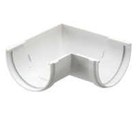 Угловой элемент 90 гр. соединяет желоба при прямых углах поворота карниза. Перенаправляет поток воды. Такой элемент часто используется на вальмовых крышах или на специальных архитектурных выступах.
